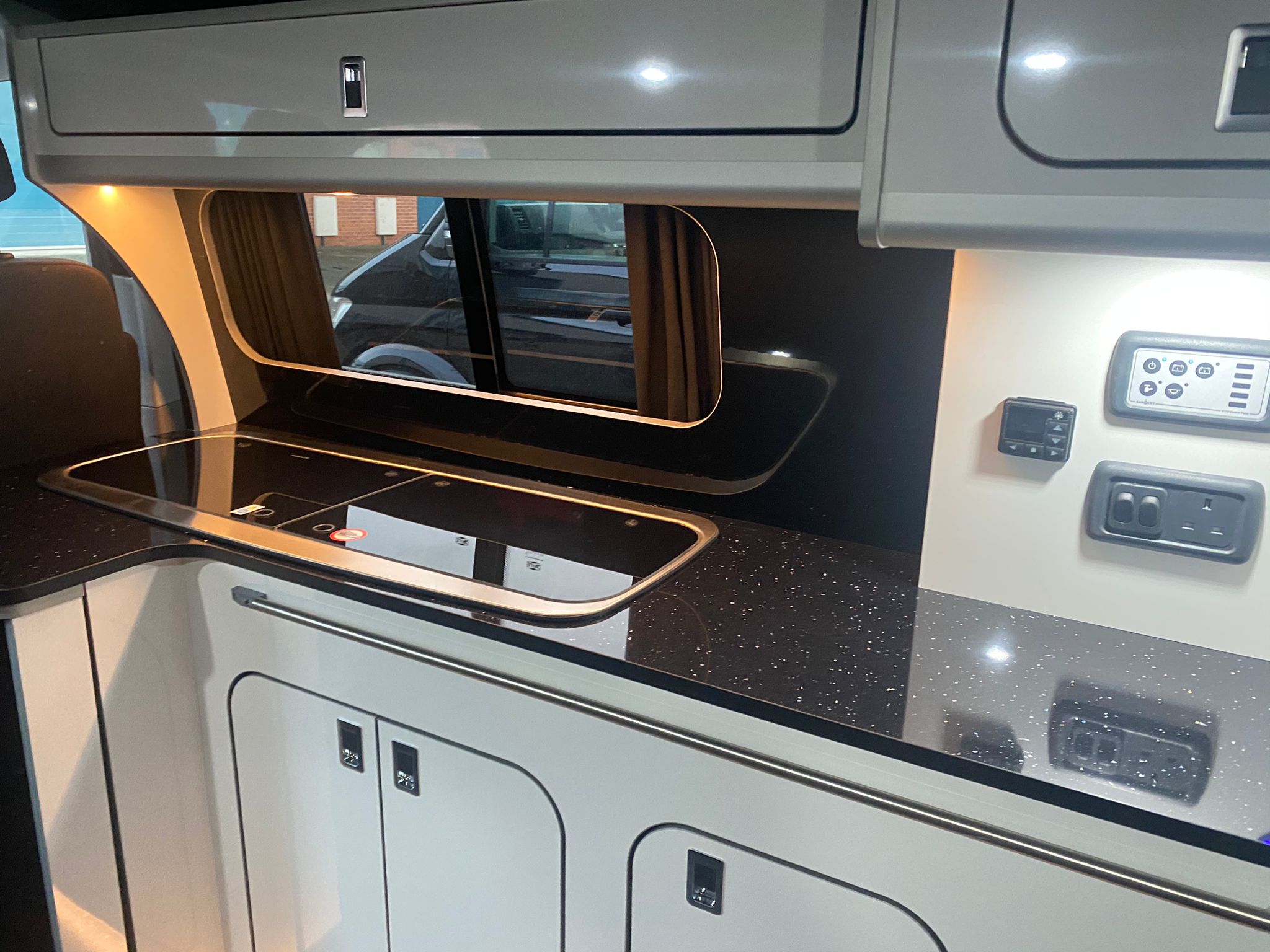 Converting a campervan is an investment and we’re here to help you get it right. Our workshop is kitted out with furniture sets so you can see the many different options to choose from. We also have samples of worktops, flooring, carpets and fabrics to help you pick the ideal combination for your campervan.