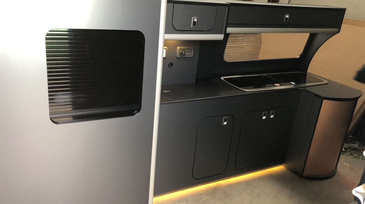 We want every piece of furniture we make to look flawless for many years to come, so we use edge banding instead of more commonly used knock-on edging for a high-end finish. This is available in a huge variety of colours, textures and finishes, including matt, gloss and chrome, so you can create a unique furniture set for your campervan.
